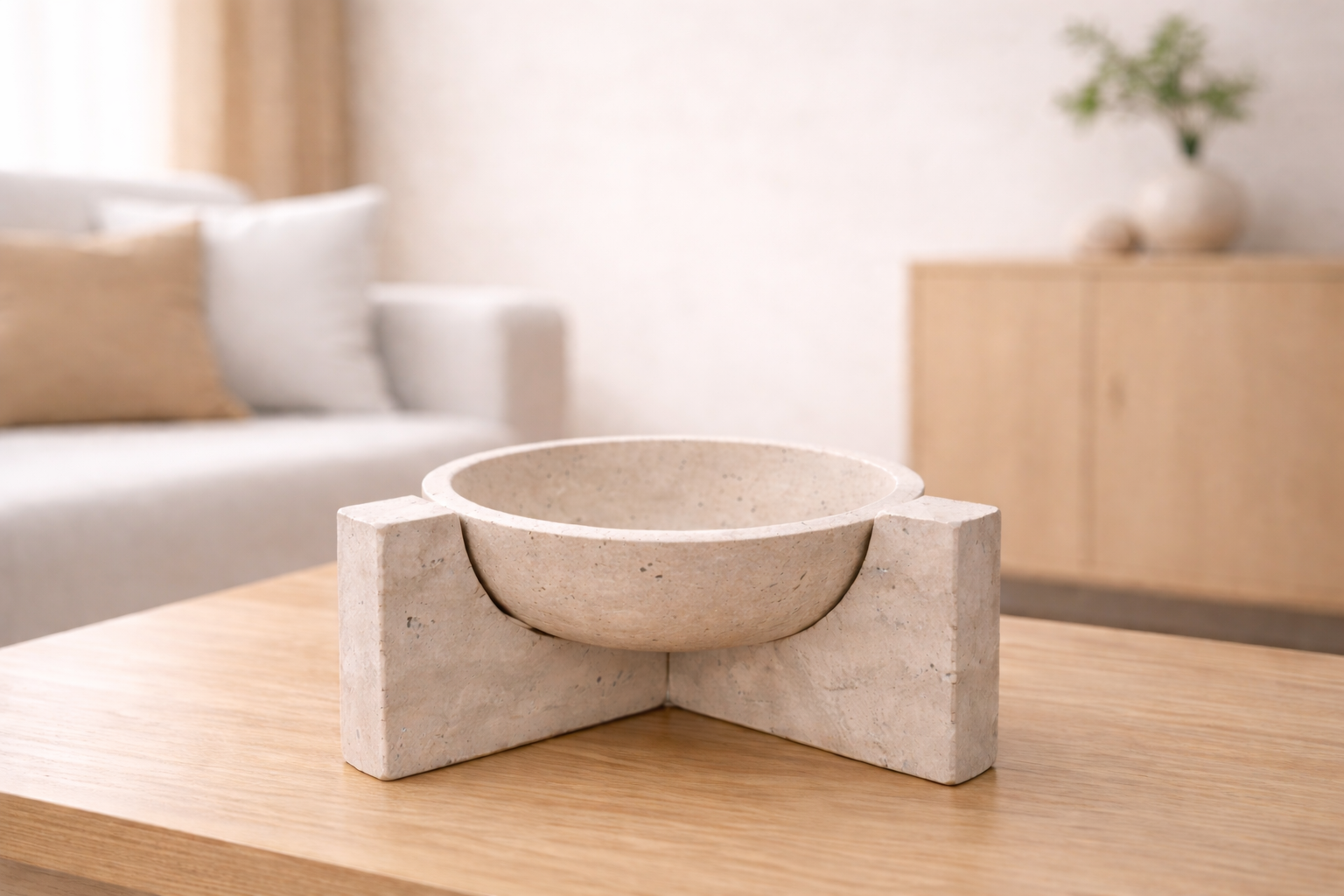 کاسه میوه خوری پایه دار سنگ تراورتن (کوچک)
