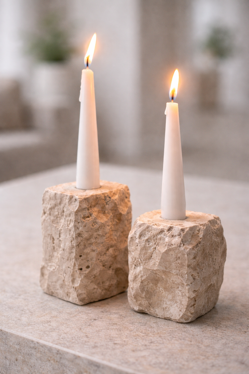 این ست جاشمعی دستساز از سنگ تراورتن طبیعی با حفظ بافت خام و ارگانیک سنگ طراحی شده است. فرم نامنظم و طبیعی هر قطعه، به این محصول هویتی منحصربهفرد میدهد و آن را به انتخابی ایدهآل برای دکوراسیونهای مینیمال، مدرن و گرم تبدیل میکند.