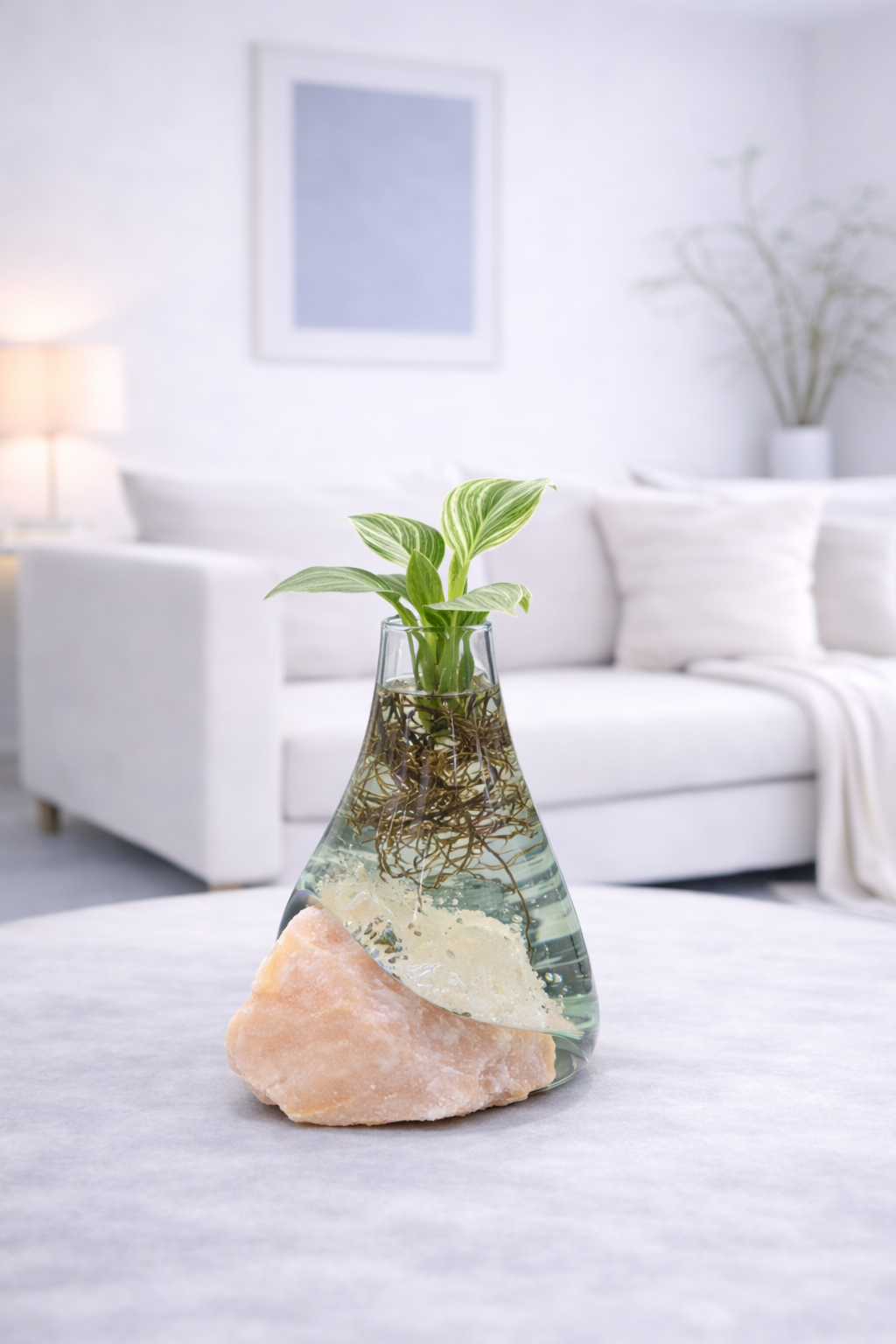 ⚠️ توجه: گیاه موجود در تصاویر صرفاً جنبه نمایشی دارد و این محصول فقط شامل گلدان شیشهای و سنگ طبیعی است و گیاه همراه آن ارسال نمیشود. شما میتوانید بهدلخواه خود گیاه موردنظر را در آن قرار دهید.