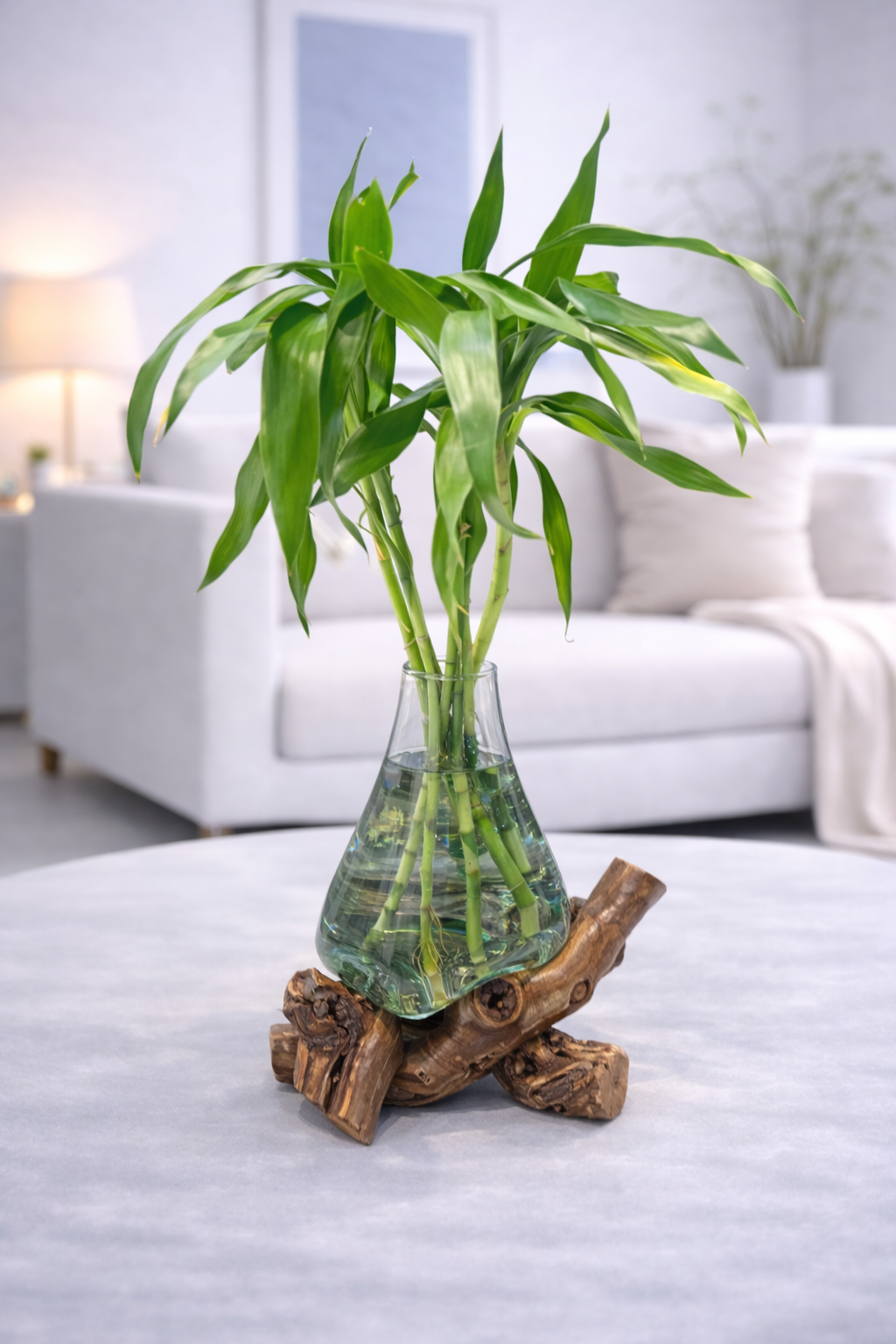 ⚠️ توجه: گیاه داخل تصویر صرفاً جهت نمایش است و همراه محصول ارسال نمیشود. محصول شامل گلدان شیشهای و پایه چوبی میباشد.